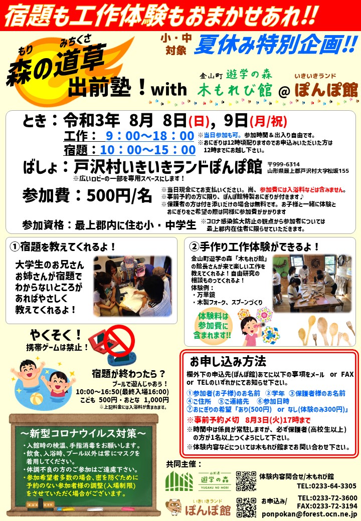 【内容変更】森の道草出前塾
