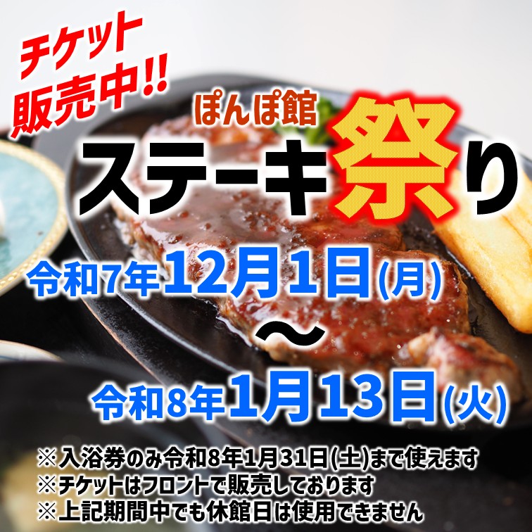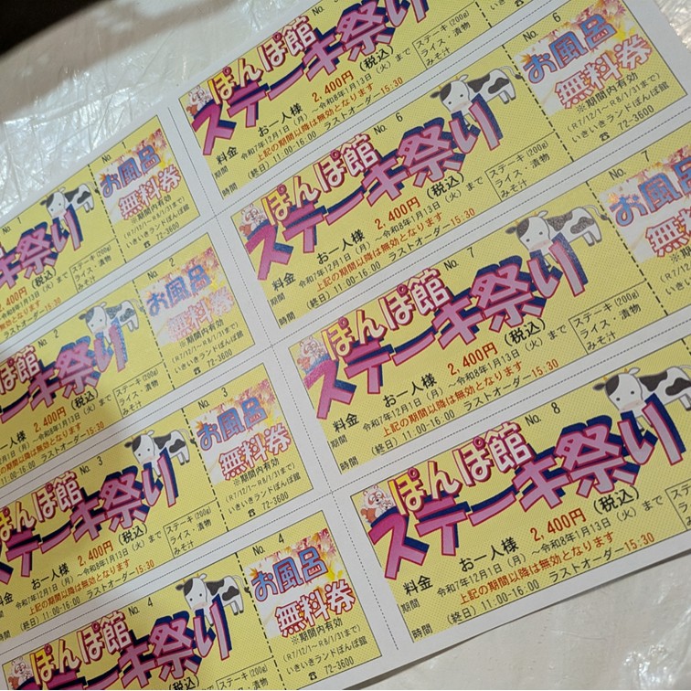 ありがたいことに「ぽんぽ館のステーキはんまい!」とのお声をたくさんちょうだいしておりますので、今年もお得にステーキをお楽しみいただくためにステーキ祭りを開催します!